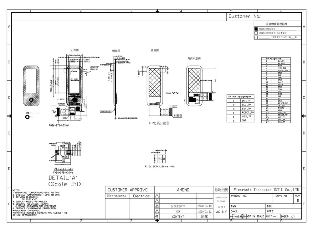 Med utvikling av skjermer er det mange typer skjermer i dag. Hva er fordelene med denne Victronix 1,1 tommers 126x294 AMOLED? Til å begynne med har den 420 CD/m² typisk lysstyrke (450 CD/m² maks), 88 ° bred visningsvinkel, 110% NTSC -fargespekter og 60 000: 1 kontrastforhold for lesbarhet under alle lysforhold. For det andre støtter den fleksibel 3-tråds/4-ledning SPI-protokoll og RM69310 driver IC for sømløs integrasjon. I tillegg har den passert strenge miljøsester (ESD, vibrasjon, temperatursykling) for drift i temperaturer fra -20 ° C til 70 ° C. Det viktigste er at vi tilbyr en tilpassbar tjeneste for å imøtekomme kundenes behov.